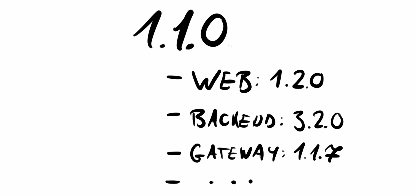 It is all nice and easy if you only have a single backend or frontend that you have to version, but what if you have a complex system of microservices like many software products nowadays. You may want or need to communicate an overall system version to your customers and, surely, you can't give out a list of 30 version numbers for each of the services present in the system.