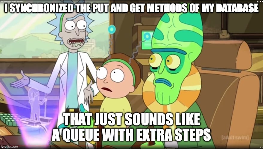 }This guarantees mutual exclusion. Only one thread can be inside the database at any time. No races, no corruption, no surprises, and that’s exactly the problem.